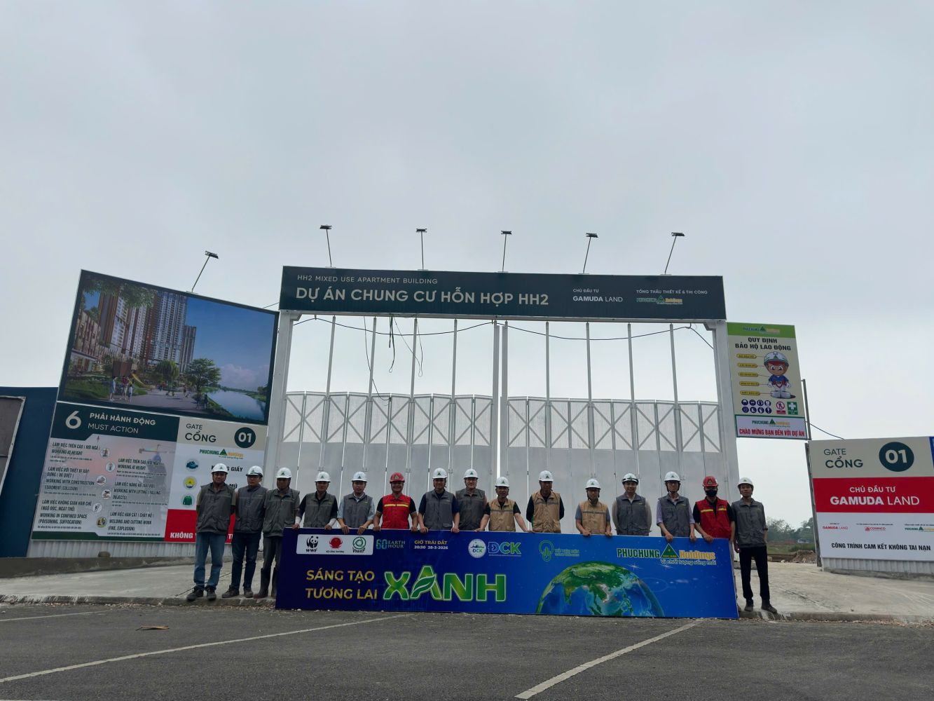 Một số hình ảnh hoạt động hưởng ứng chiến dịch Giờ Trái Đất 2026 tại các dự án: dự án Eurowindow Sprort Garden, Nghệ An, tại dự án Chung cư HH2 Gamuda, Yên Sở, Hà Nội, dự án Bệnh viện đa khoa quốc tế Vietsing, Hà Nội, dự án MIK – The Victoria Smart City, Hà Nội, dự án Phenikaa, Hoà Lạc, dự án Cụm Công nghiệp Đình Lập, Lạng Sơn… và các dự án khác mà Phục Hưng Holdings đang triển khai thi công.